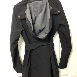 Beautiful coat in excellent condition. Cute asymmetrical neckline. Removable hood and tie