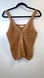 Lolita open-knit sleeveless tank top in warm tan camel colour, featuring a textured honeycomb pattern and front button closure.