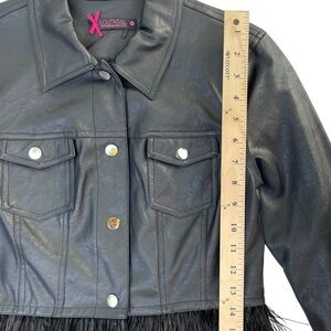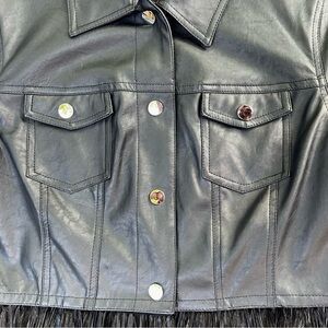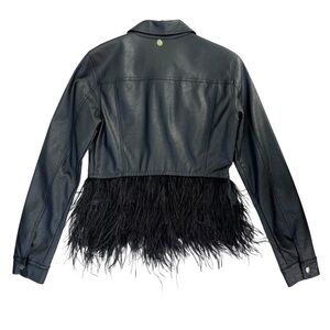 Turn heads with this Lolitas&Lolos black cropped leatherette jacket featuring playful removable feather trim at the hemline.