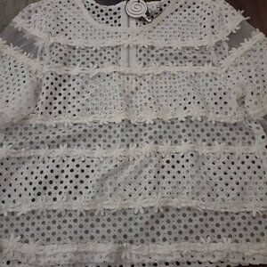 Lollipop Designed by Korea NWT Junior's S White Daisy Crochet Mesh Mod Retro Top