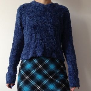 Lolypop - Soft & Fuzzy Dark Blue V-Neck Sweater