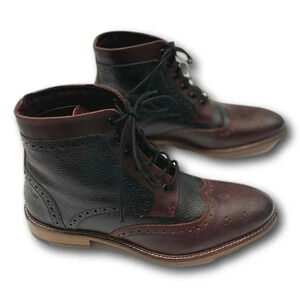 London Brogue Mens Shoes Size 8 Wing Tip Handcrafted Black Brown Leather