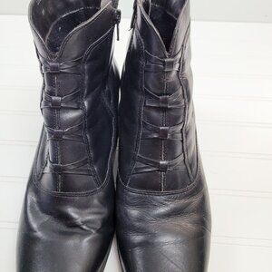 London Fog Ankle Boot Womens Size 8.5 Black Leather Side Zip Witchy Victorian