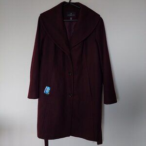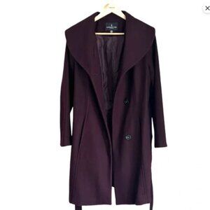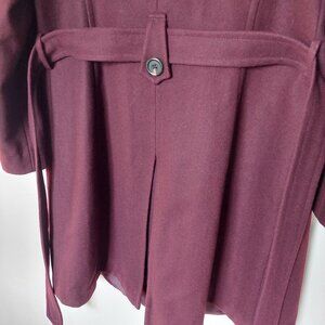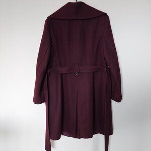 London Fog Belted Wool Blend Dark Aubergine Burgundy Long Pea Trench Coat Sz XL