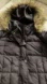 Elegant dark puffer with faux fur trim. Ideal for cold weather.