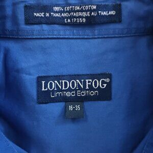 London Fog Mens Long Sleeve Dress Shirt Solid Blue Size16 Pocket Point Collar