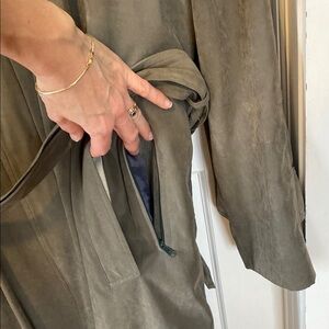London Fog Men's Olive Army GreenTrench Coat Single Breasted Faux Suede Style