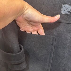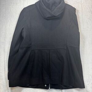 London Fog Pea Coat Womens Size XL Black Hooded Wool Blend Mid Length