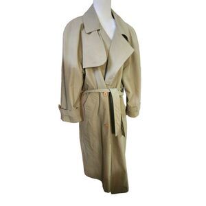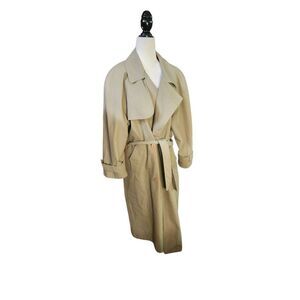 London Fog Vintage Trench Coat Long Kahki Tie Button Down Cotton 80s 90s 12P