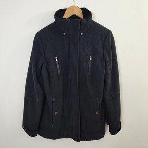 London Fog – Women Wool Faux Fur Trim Winter Jacket/Coat Charcoal Gray Medium