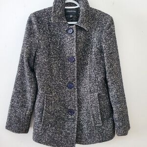 London Fog Women's Black and White Pea Coat S/M Wool Jacket