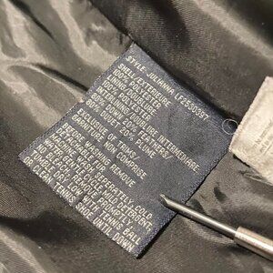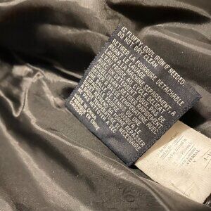 This jacket is pre-owned and in used condition. There arae multiple stains on this jacket. On the sleeves, the front and the back. Please see all photos for exact item.