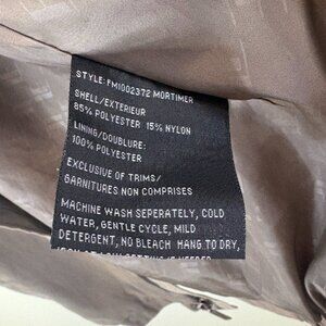 Two tone khaki with two exterior and two interior pockets. Men's size small, zipper and snap closure for those rainy days