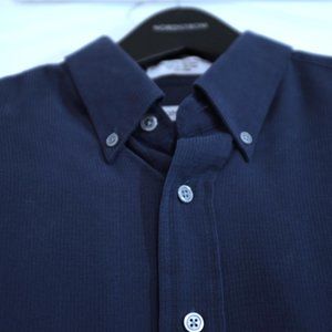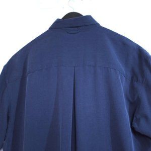 The London Fog Navy Silky Polynosic Short Sleeve Dress Shirt in size M is perfect for summer.