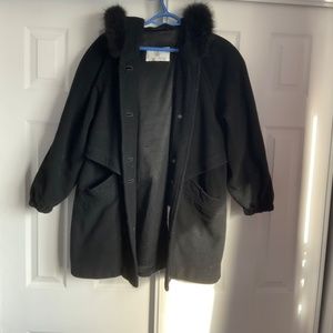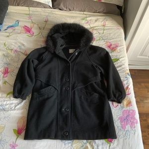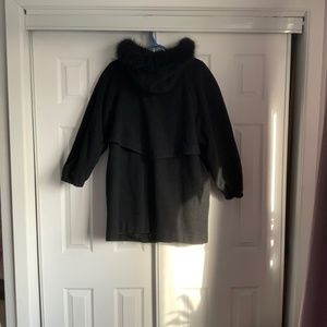 So warm and beautiful, oversized size 8, fake fur hood, and nice parka with a trench coat detail in the back. Heavy, cozy, perfect for cold days.