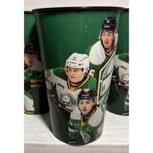 A collectible set of three Pepsi cups featuring vivid London Knights graphics and player images. Durable, reusable design, ideal for hockey fans.