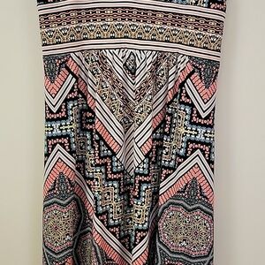Stylish sleeveless dress with a vibrant geometric pattern from London Times. Features a mix of black, pink, and cream colors. In excellent condition! Made in Vietnam. Size 10.