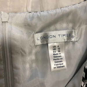London Times Gingham Shift Sleeveless Black and White with Ruffles Dress Size 8
