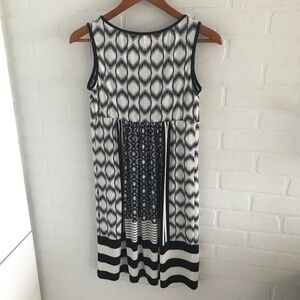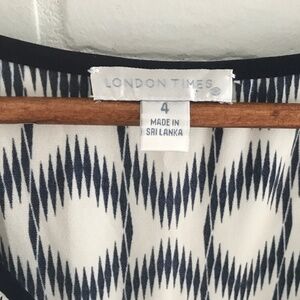 London Times Mini Dress navy Ivory Coastal Native V neck Sz 4