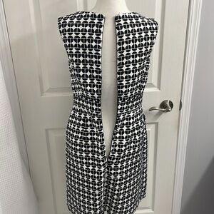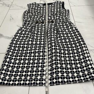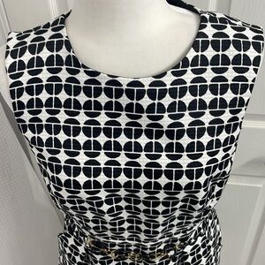 London Times Dress Black & White Patterned with Accent Belt. In perfect condition, no stains, snags or flaws. Perfect for a wedding, cocktail, work or professional event. Long zipper and front side pockets.