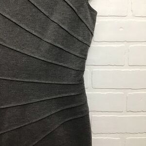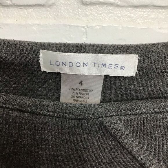London Times sheath dress charcoal grey short sleeves slimming size 4