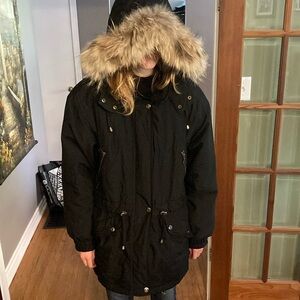 London fog black removable liner hooded coat.