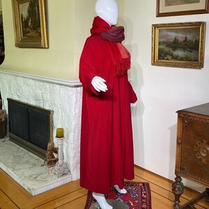 In good preowned condition (although inner zip liner is missing) London Fog maxi length A-line trench coat in gorgeous red. Classic styling, hidden front buttons, exterior slant pockets and one interior pocket.