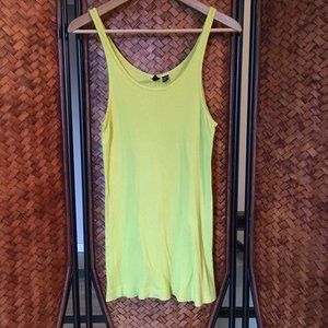 Very good preowned condition, ribbed, acid yellow tank top by Cynthia Rowley. Some outlets describe the colour as lime. Long, lightweight, comfortable and bold coloured, this garment is a perfect addition to a summer wardrobe.