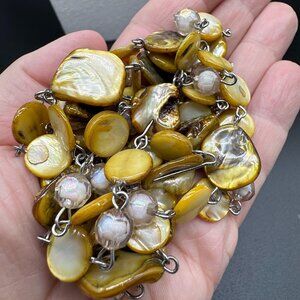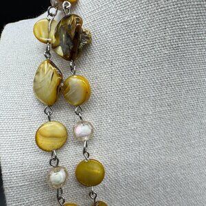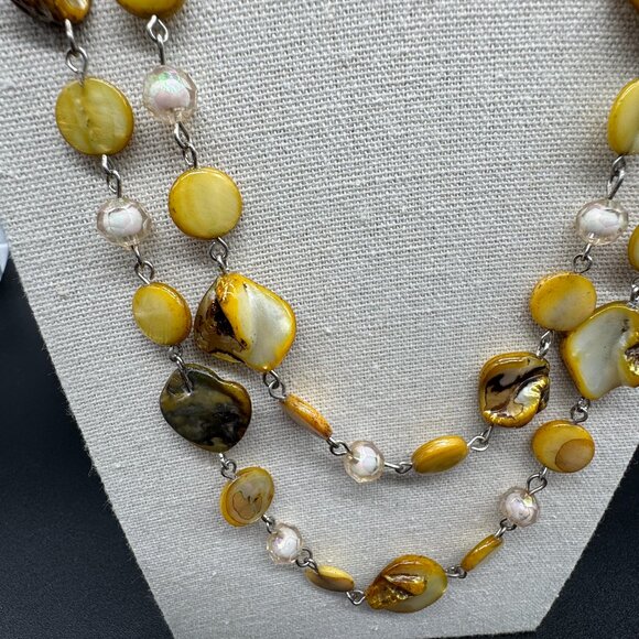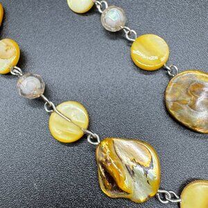 Long Beaded Necklace Glass Beads and Dyed Abalone Shells Fall Fashion Costume Jewelry