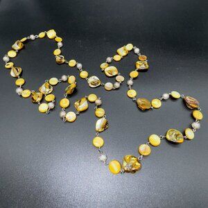 Long Beaded Necklace Glass Beads and Dyed Abalone Shells 45 inches Fall Fashion