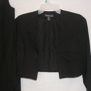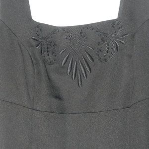 - square neckline with embroidery on bodice (photo looks grey, but that is just so you can see the embroidery. It is actually black on black)