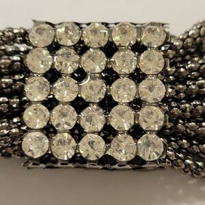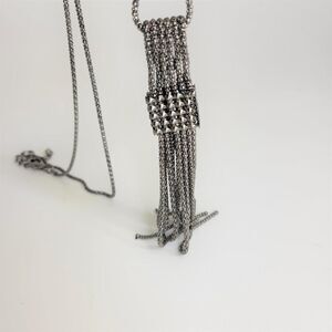 Long beautiful necklace in a hues of hematite- more of a glistening blackish gray with a metallic luster.