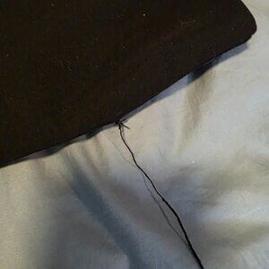 Gorgeous long black vest with tie up belt and pockets. Belt loop on left has come apart, requires fixing. Size 2 from Torrid, Pit to pit measures 23", length is 29.5".