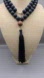 This elegant wooden bead necklace features striking black beads complemented by a single brown bead and a stylish tassel. Perfect for adding a touch of sophistication to any outfit.