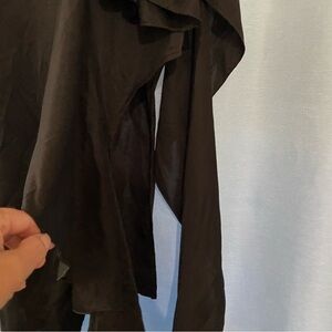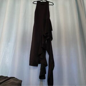 This elegant black formal dress doesn’t have a brand etiquette, i don’t have any idea what size it is but i provided you a measurement in the pictures for your reference.