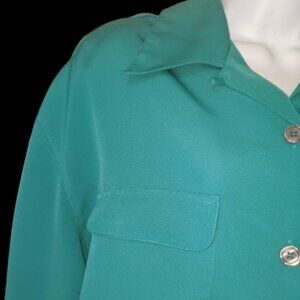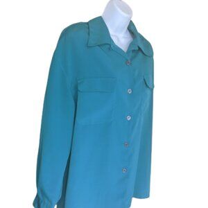 Long Blue-Green Teal blue long Sleeve Silky Blouse Size 14 NEW NWOT