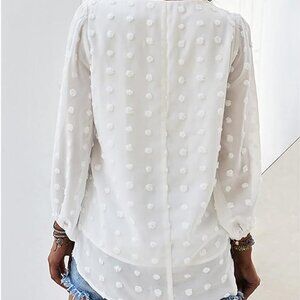 Long Bubble Sleeve V Neck Swiss Dot Chiffon Top
