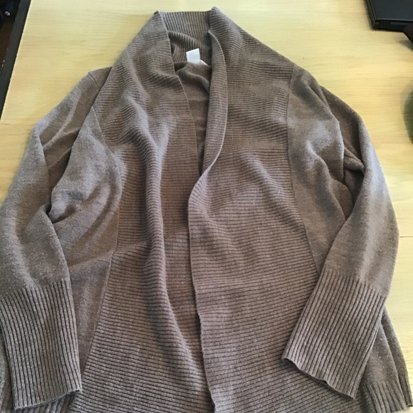 Long tan cardigan Detailing on the cuff of the sleeve, as well as the front of the cardigan Super comfortable Barely worn