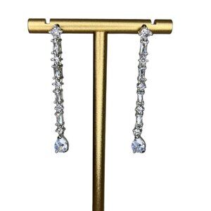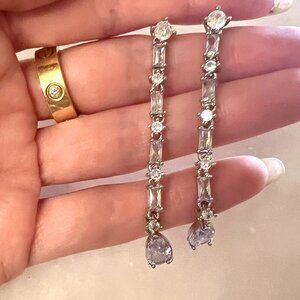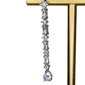These long teardrop earrings are absolutely stunning for formal events or event just for feeling gorgeous every day. They are CZ and silver alloy measuring two inches long.