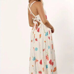 Long Flower Pattern Tie Back Cami Maxi Dress