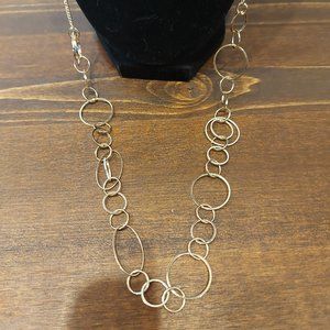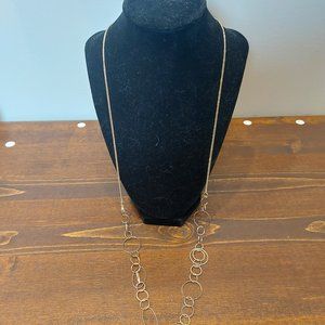 Features a multi-loop/link chain in a light gold tone finish, adjustable chain, with lobster claw clasp.