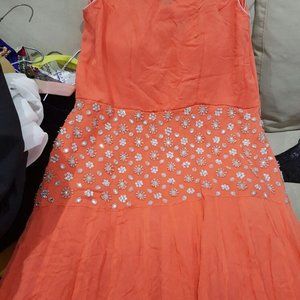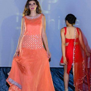 Dachine Runway Sell off Pure Georgette Gown with silver Bead and Diamond Embroidery