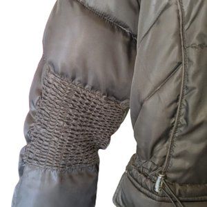 Long Hooded Dark Green Puffer Coat with Cinched Waist Size Large