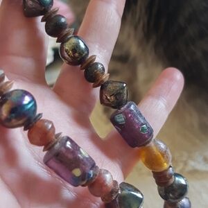 Long Length Boho Artsy Funky Amber Mixed Beaded Necklace