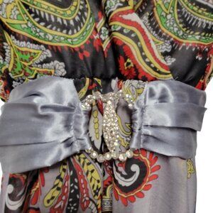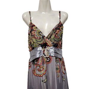 Long Maxi Summer Dress Party Gown Paisley Abstract Print Colorful -Size L
