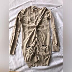 Long Oatmeal Coloured Cardigan with Funky Pockets
