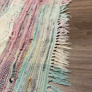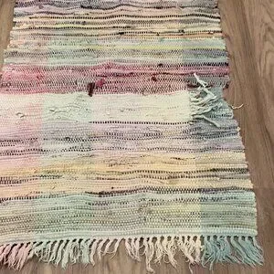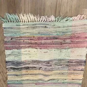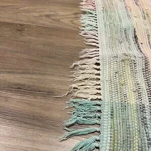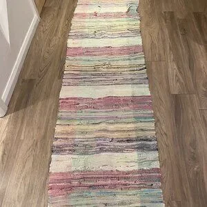 Classic look. A bit frayed in one area. See pics. But a sturdy and super cute long rug.