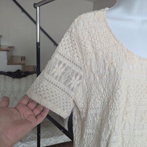 Long Short Sleeve Cream White Lace Top Size XL