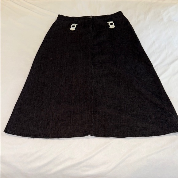 Long Skirt Black Midi A-Line Corduroy Rhinestones on Beltloops Women's Size 3