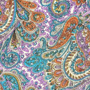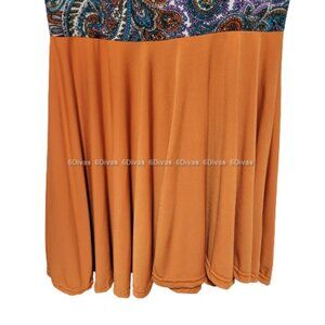 Elastic Waist Long Maxi Orange Skirt with multicolored Paisley Print